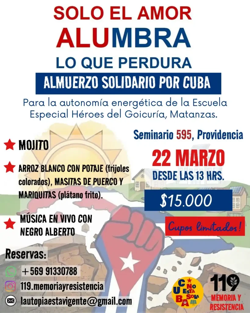 El Colectivo 119 Memoria y Resistencia está desarrollando la Campaña «Solo el amor alumbra lo que perdura» para ayudar a financiar la autonomía energética de la Escuela Especial «Héroes del Goicuría» de Matanzas, proyecto que beneficiará en total a 4 escuelas del Complejo Educativo en Matanzas.